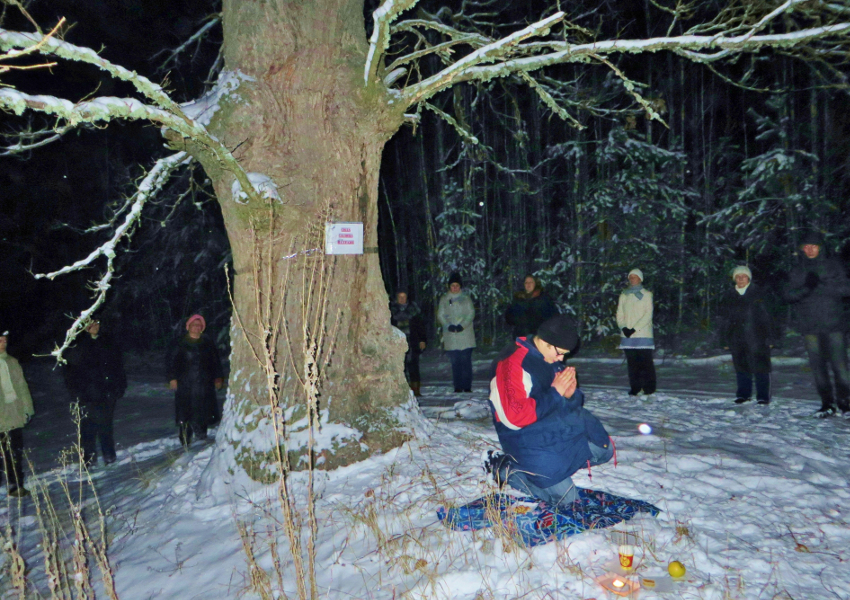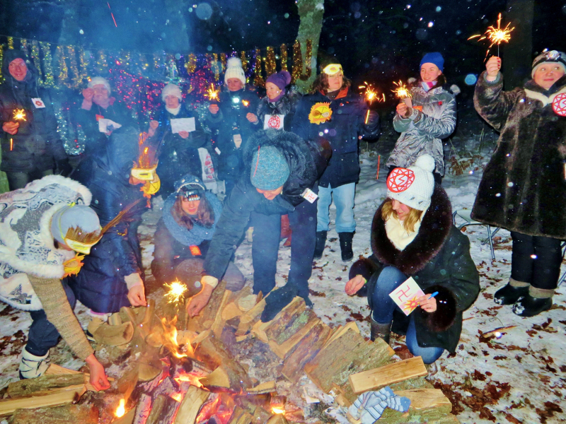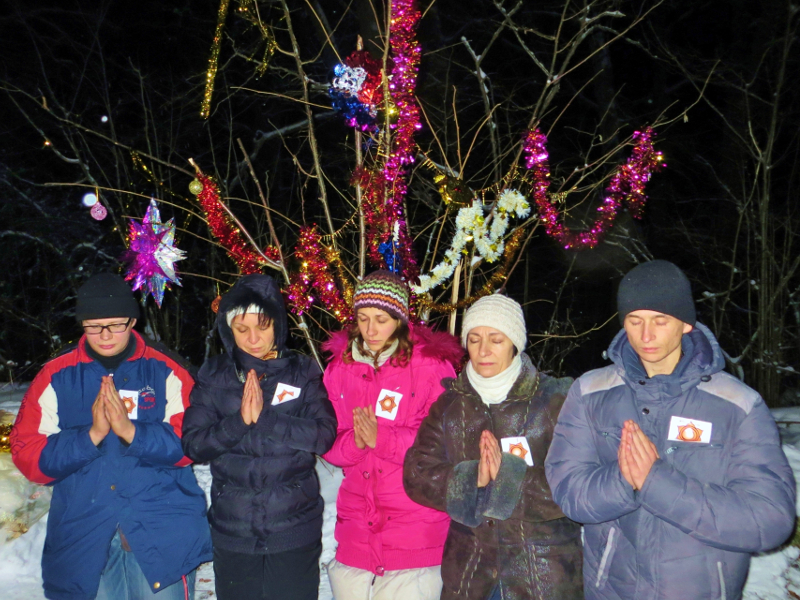 Затем ашрамовцы поделились своими размышлениями на тему «Что мне дал этот зимний Ашрам». Это очень важная практика, ведь она учит анализировать свои действия и делать выводы. Затем участники вознесли благодарственную молитву Богу у Очага Агуны и по 2 человека разошлись по всему Ашраму. Они пришли в те места, где проводили практику приветствия по группам. Участники поблагодарили незримых помощников за помощь и за разрешение посетить это место Силы. Надо сказать, что любое место Силы не открывается всем людям подряд. Его Сила открывается лишь тем, у кого открыто сердце, искреннее намерение помогать миру и кто бережно относится не только к этому месту, но и вообще к природе и планете. Так что обычные люди не получают этой Силы, потому что настроены совершенно на другую вибрацию – на получение удовольствия для себя. Человечество в большей своей массе так и не поняло, что это есть главный корень всех их бед и страданий.