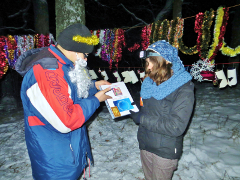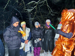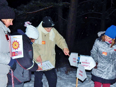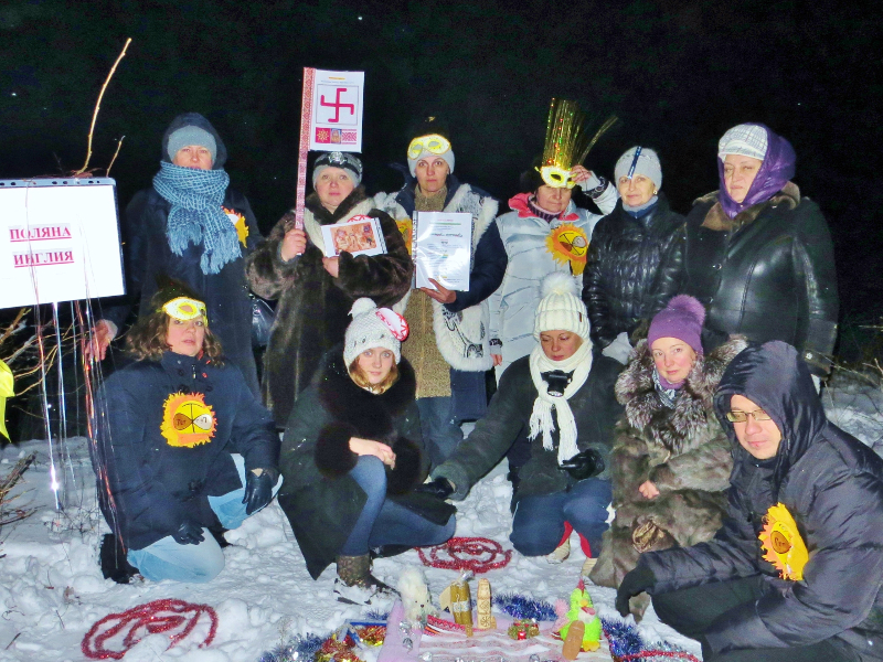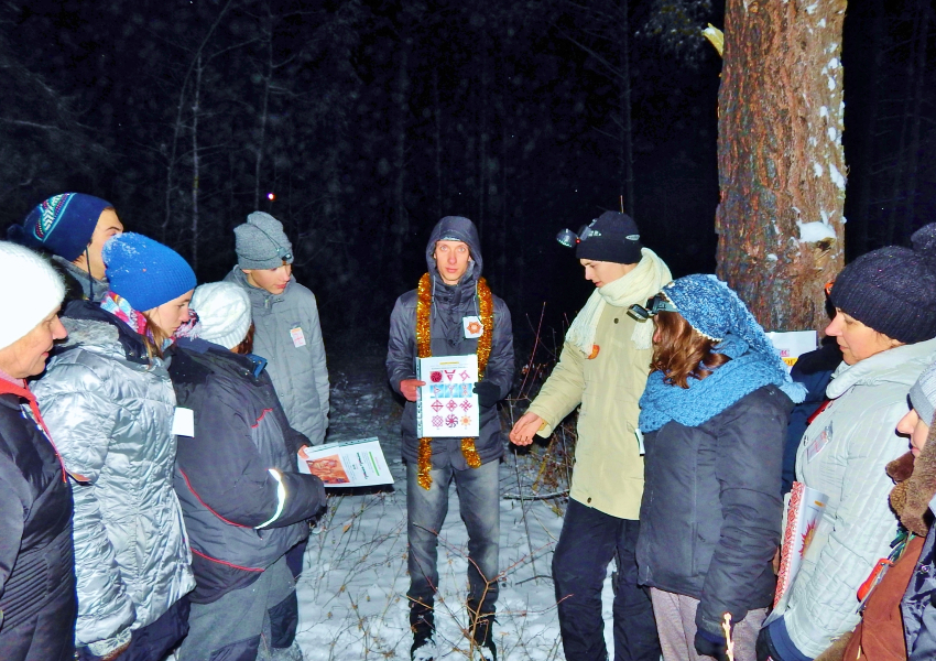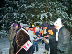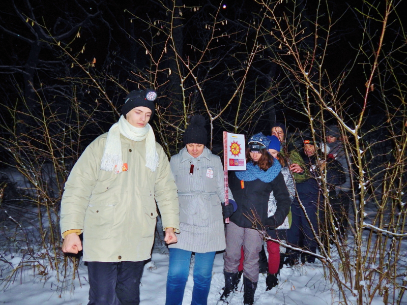Практика-сказка удалась на славу, но побродить по ночному лесу и сугробам всё же пришлось, пока нашли места нахождения богов. Да и задания были не из лёгких. «Боги» предложили участникам внимательно рассмотреть символы и знаки на фотографиях, а затем указать те, что характеризовали именно этого бога. Например, у Даждьбога из 12-ти символов ему принадлежали только четыре: №1, №4, №8 и №12.