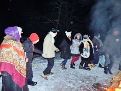 Согревшись немного у костра Очага, дальше ашрамовцы играли в сказку. Команда «Клёгеть» проводила её и фотографировала команды в действии. Другие четыре команды объединились в две команды: