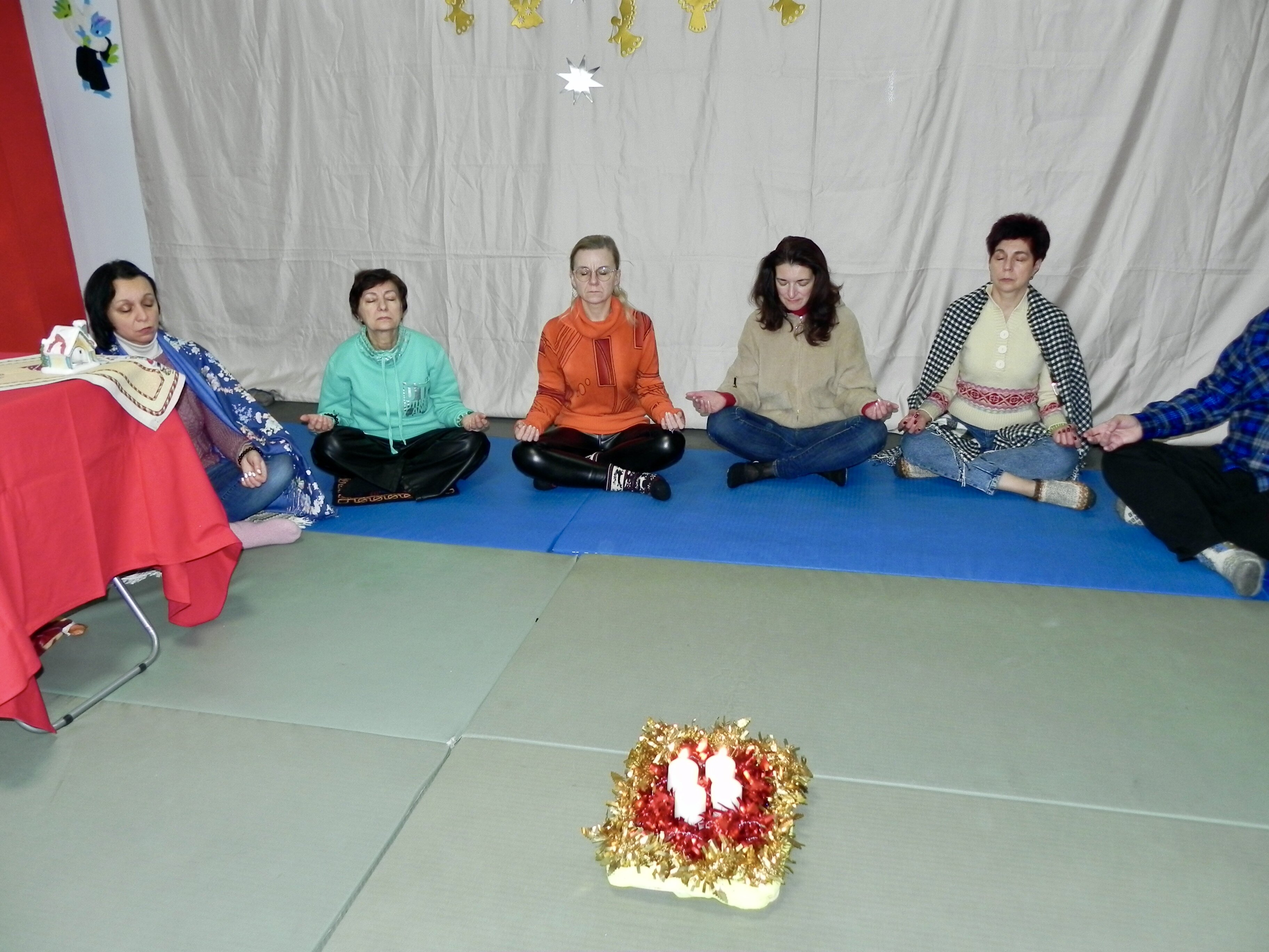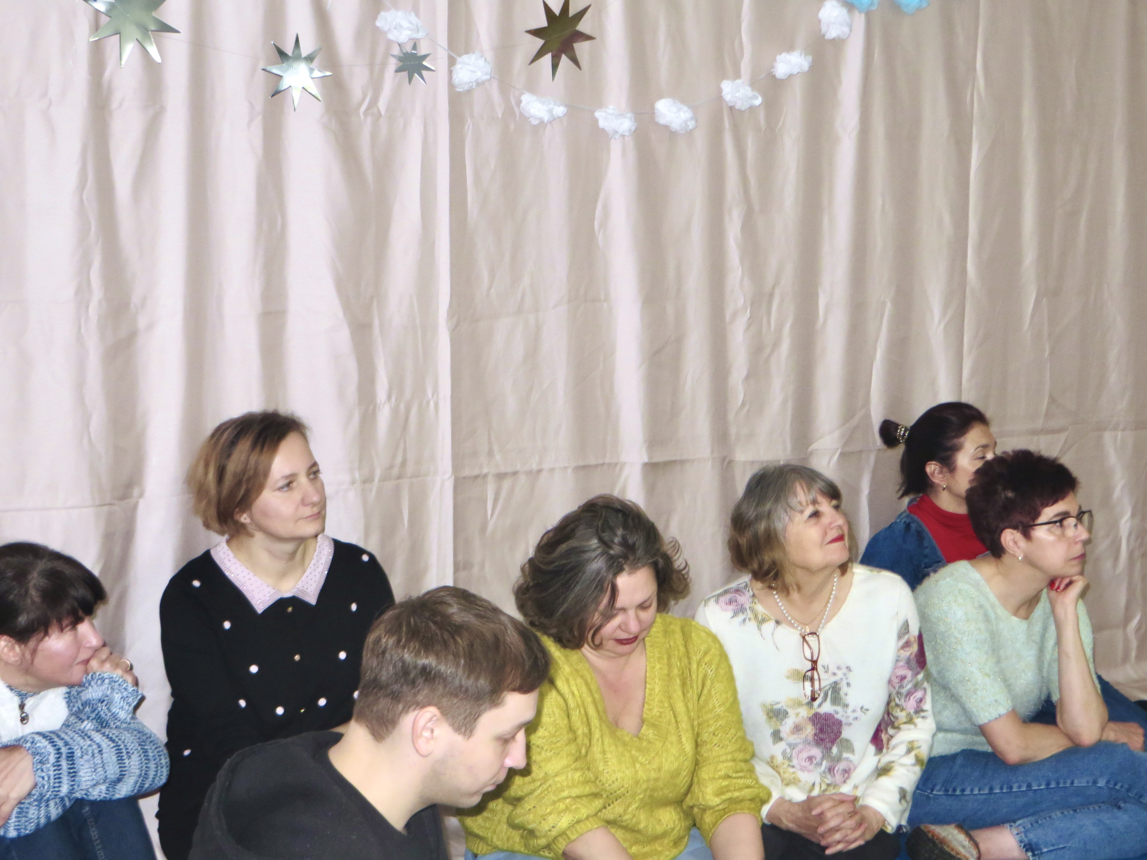 После медитации по традиции все вместе спели. Сначала пели песню «Молись за Украину», автора которой мы не знаем, а затем наши песни Рождества «Покаяние» и «Душа моя», слова и музыку которых написала Учитель. Затем по традиции был сладкий стол, за которым ученики общались со своим Учителем на разные темы, задавали вопросы.