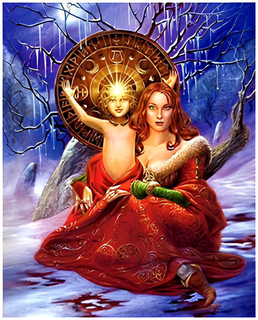 По легенде древних славян, мать Коляды была богиней неба и матерью Солнца. В день зимнего солнцестояния в днепровских водах она рожала сына Божича. Маленькое Солнце предстаёт в образе ребенка, означая победу Света над Тьмой (рис. 3). Однако в 988 году князь Владимир Великий крестил Киевскую Русь и перешёл на церковный календарь (юлианский). Начало года было с 01 марта. Согласно юлианскому календарю, на Руси был 6496-й год от Сотворения Мира. В 1492 году князь московский Иван III перенёс начало года на 01 сентября, согласно византийской церковной традиции.