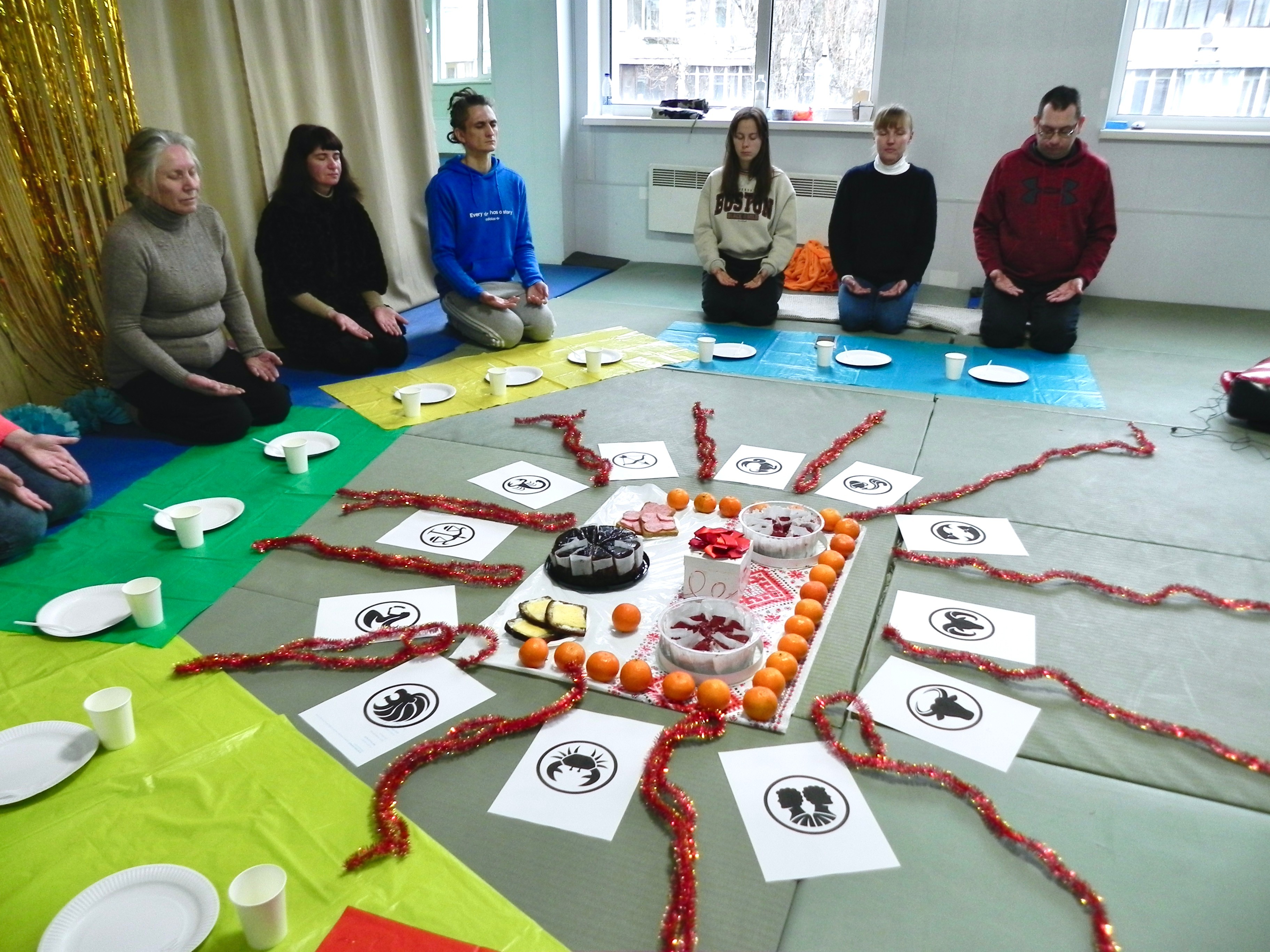 Рождественское угощение в центре стола наполняли энергией 12-ти частей Зодиака. Ведущий Агарт под медитативную музыку подключил участников к энергиям всех знаков Зодиака и провёл медитативную практику…