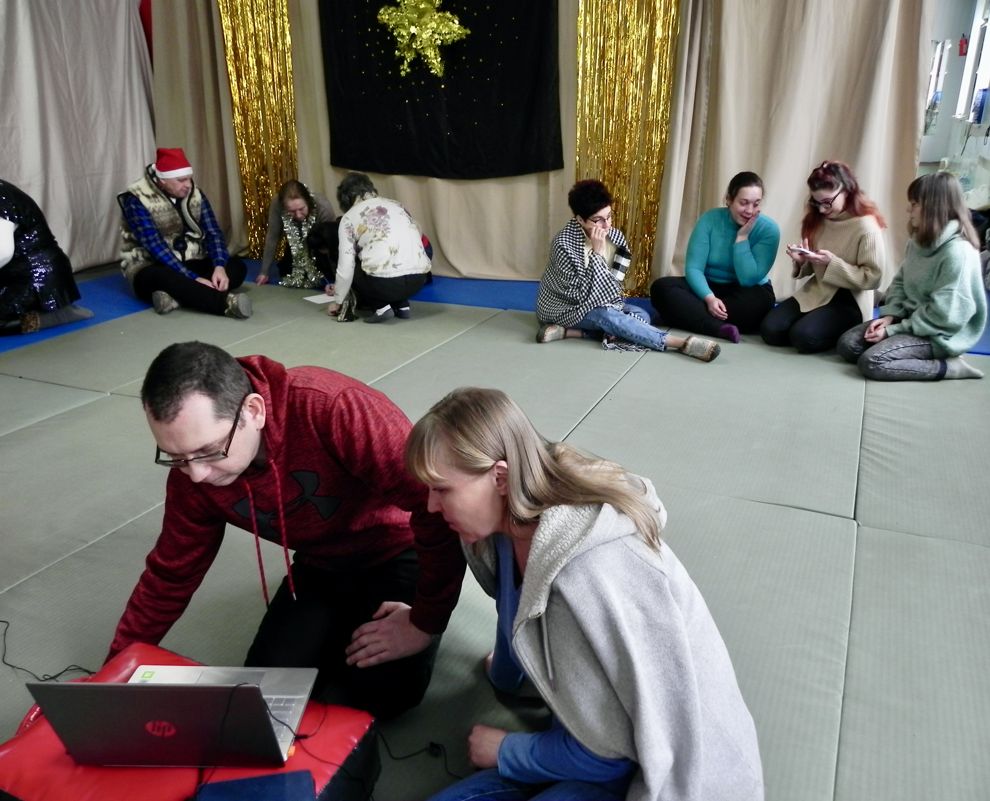 По традиции мы собрались 07 января в школе на праздник Рождества. В этом году наш новый главный режиссёр Арго, режиссёры-помощники Трояна и Викинг, который был ещё и звукорежиссёром, устроили эзотерический КВН. Участников разделили на четыре команды: