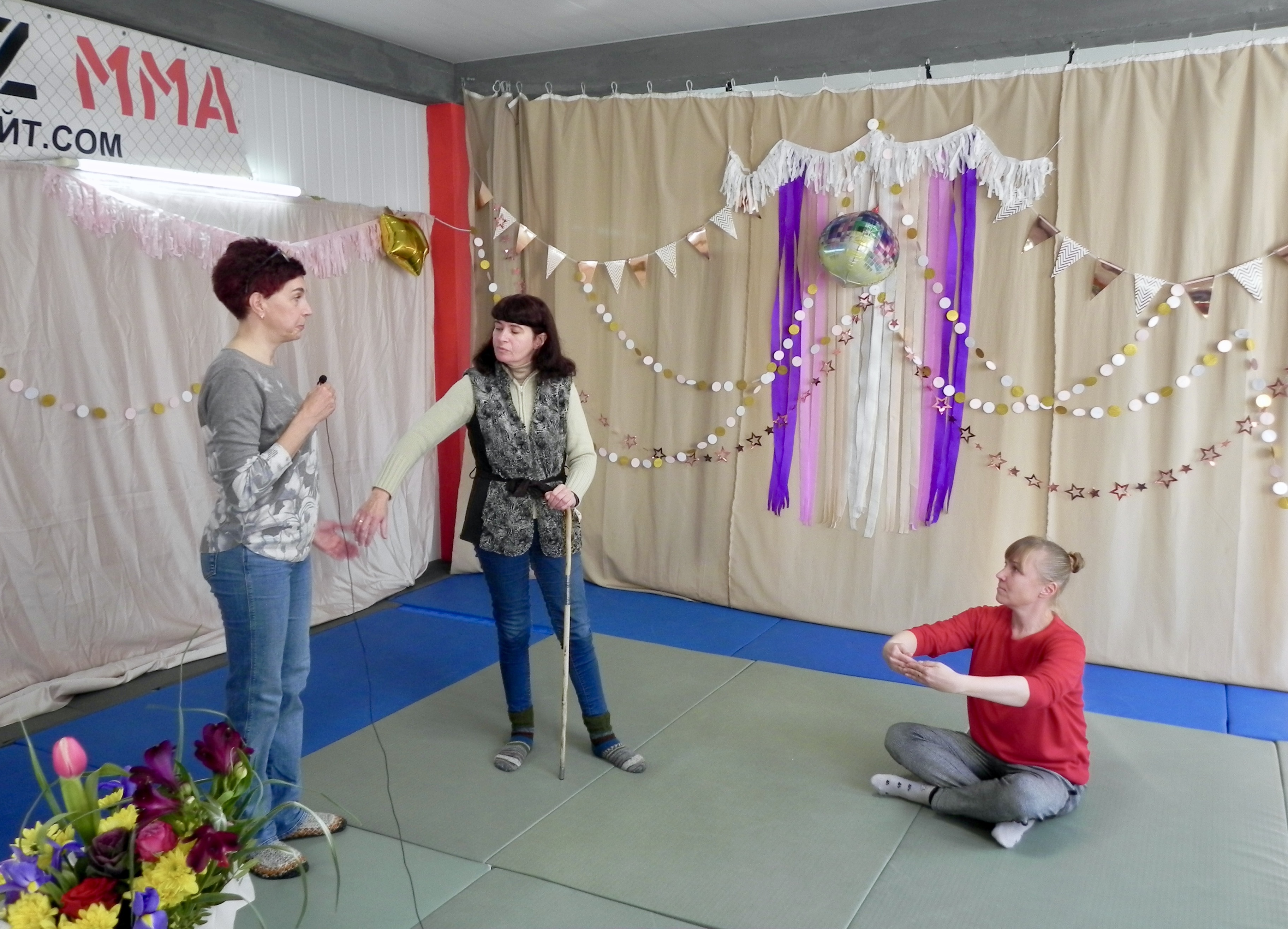 Как всегда, война внесла свои коррективы, поэтому часть учеников участвовала онлайн из разных стран и городов, часть – по фантому (это наши фронтовики, а также те, у кого не было связи, и заболевшие ученики), остальные смогли добраться лично. Напомним читателям, почему мы не перешли на украинский язык, потому что у нас есть ученики из других стран (не выехавшие во время войны, а граждане других стран, которые не знают украинского языка). Между собою у нас все общаются на украинском языке, а лекции и практики приходится проводить на русском, так как зарубежные ученики участвуют онлайн. И так, праздник! В этот раз Учитель отказалась править сценарий и сказала, что хочет посмотреть, чему научились ученики за много лет. Ученики постарались оправдать доверие и это у них получилось.