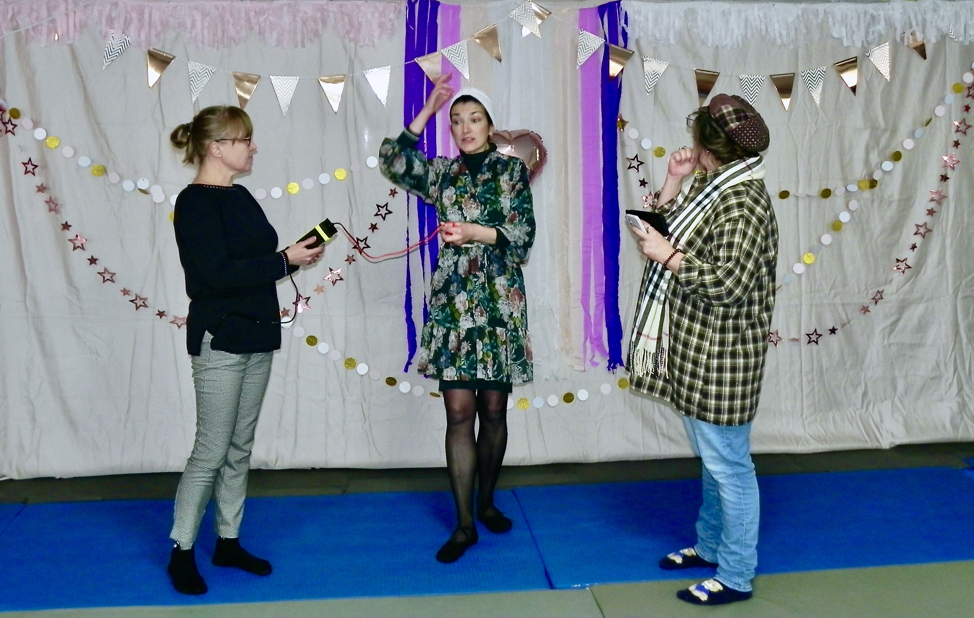 В 2023 году мы никак не назвали праздник. Обычно название даётся по теме орфического спектакля, а его не было. На сей раз была полная импровизация, в которой ученики проявляли своё творчество и умение. Как и в прошлом году, нас было немного, так как одни уехали из страны, другие ушли на фронт. Но практически все они участвовали в празднике онлайн, а ребята с фронта – по фантому. География участников онлайн была: Львов, Полтавщина, Великобритания, Нидерланды, Германия, Португалия, Бельгия (здесь участники – наши бельгийские ученики, не беженцы). Те, кто заболел или срочно был вызван на работу, тоже подключились к празднику онлайн. Есть и выбывшие из школы, потому что с каждым годом Учитель переводит нас на новую ступень и некоторые не выдерживают сильных энергий, но это естественное явление. В этот раз режиссёры придумали идею, а вот развить идею и проиграть должны были участники, которых разделили на группы, так как сюжетов было несколько. На подготовку дали всего 10 минут. Участники онлайн за эти 10 минут должны были сочинить стихи на любую тему. После небольшой подготовки началось представление сюжетов. Надо отметить, что ребята творчески развили идею режиссёров. А главное – не было никаких шпаргалок и текстов в телефонах. Это действительно было настоящее творчество в орфическом потоке праздника.