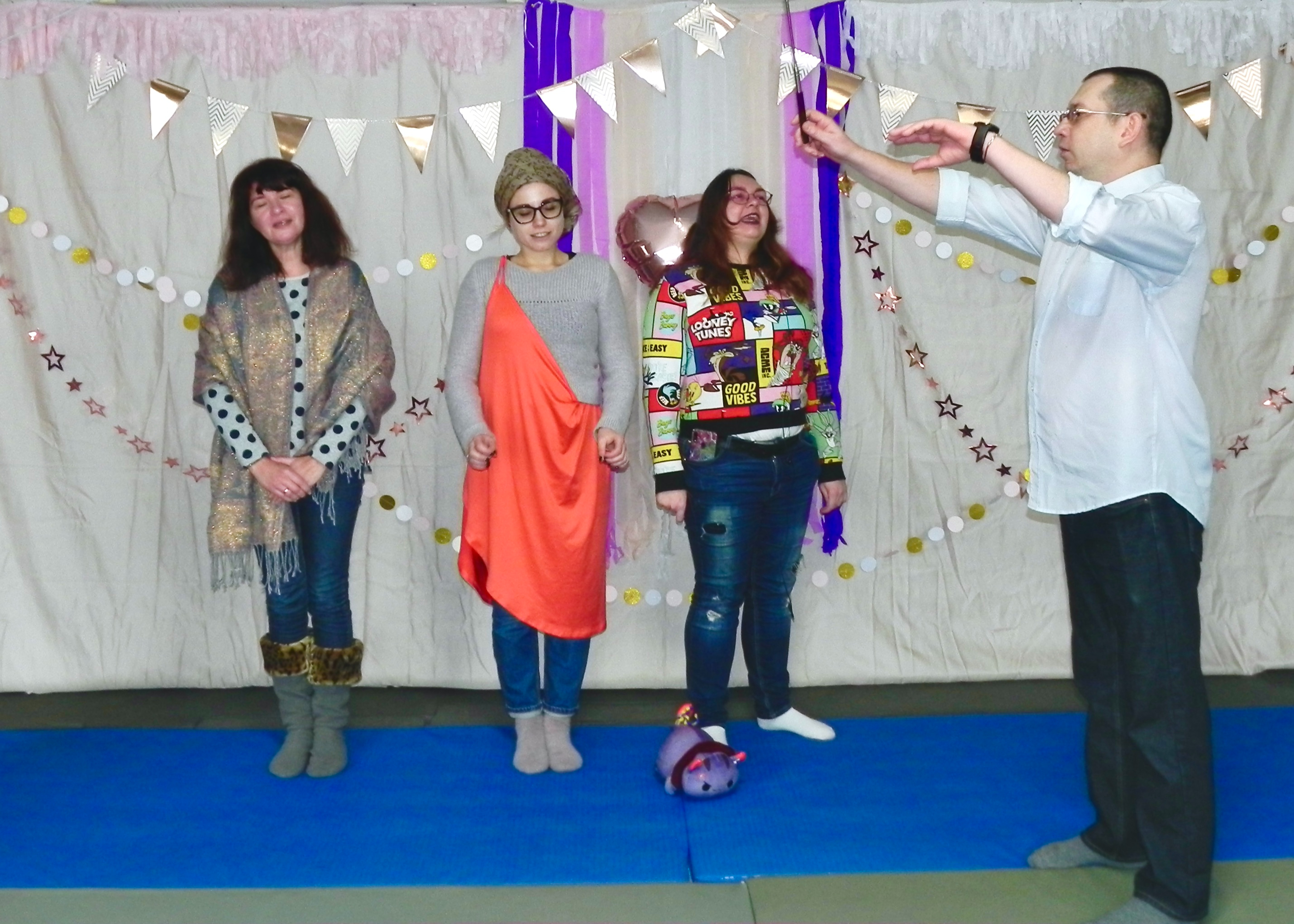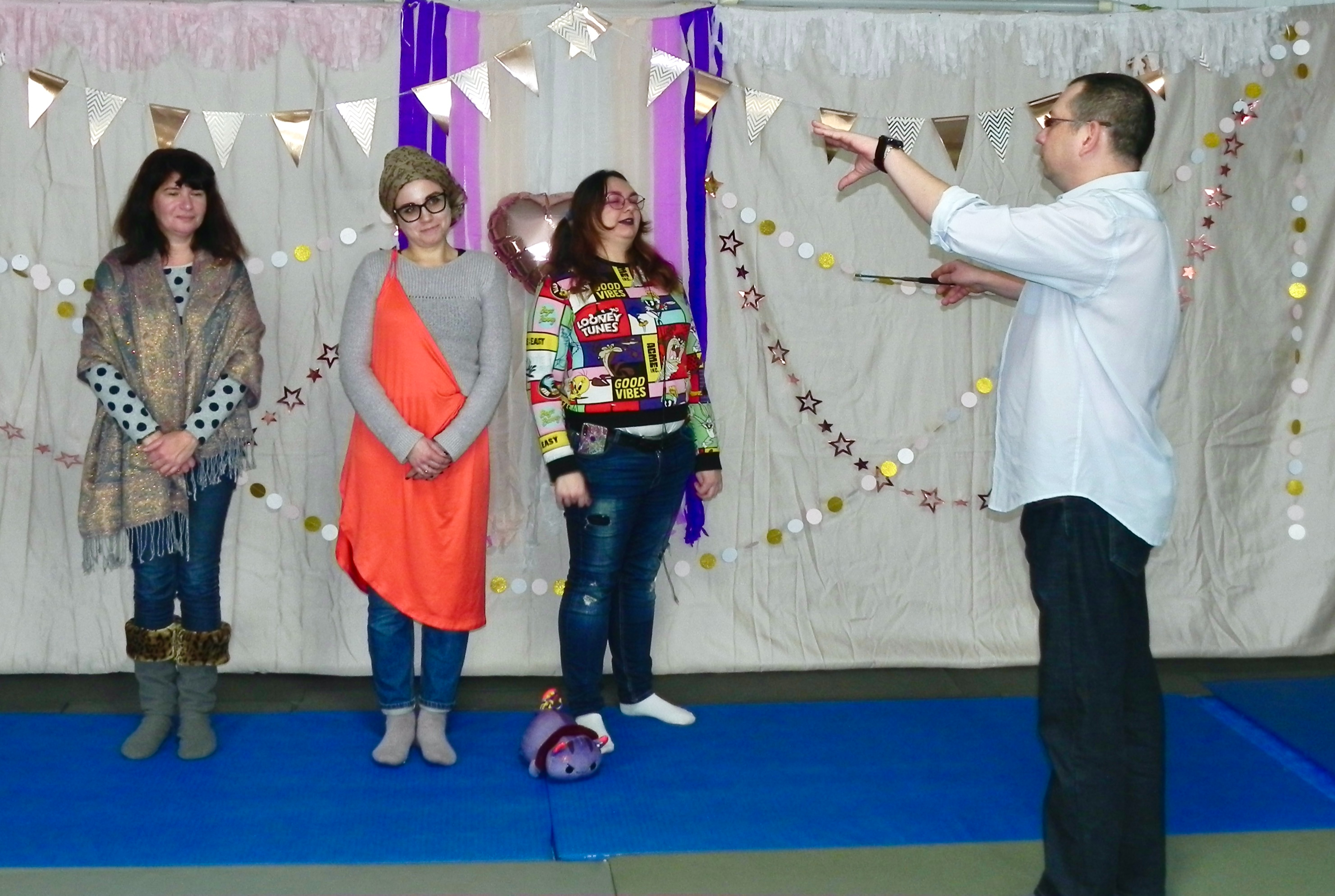 Группа №3 тоже показала мини-спектакль об иллюзии. Они сделали это на украинском языке. В принципе эта группа и общается только на украинском языке. Но у нас есть ученики из Европы, которые не знают украинский язык, потому семинары и праздники мы ведём на русском языке. Кратко сюжет этого мини-спектакля выглядел так. Люди, которые хотят духовно развиваться, пришли в школу к Учителю. Люди все разные – с разным кармическим потенциалом, разным уровнем энергии, разным восприятием и объёмом знаний. На встрече с Учителем ученики стали задавать вопросы. Одна из учениц сказала: Учень: Вчителю, ось ви кажете, що коли ми розвинемося, зможемо притягнути все, що захочемо. От я тягну, тягну і ніяк не притягну, хоча я стільки роблю! Вчитель: А що ти хочеш притягнути? Учень: Ну як, що? Фінанси, успіх, здоров'я, визнання! Ілюзія підбурює учня, закриваючи того своїми невидимими крилами від Божественного світла. Вона нашіптує учню своє: «Ще славу! І щоб люди знали ще, що я за всіх найкраща! Де моє визнання, де мої компліменти за всю мою тяжку працю?». Вчитель: Це дуже багато всього, його треба заробити важкою працею. І якщо фінанси – це інструмент для досягнення мети, а здоров'я фізичного тіла нам необхідне, щоб існувати, то успіх і визнання потрібно заслужити. Учень: Так я молюся кожен день! І не один навіть раз! Тут знову втрутилася Ілюзія і шепоче учню: «Я вже на Путіна десять проклять наслала, послала від США сто мільярдів Україні, послала енергію на будування бойового робота, вийшла на зв'язок з предками-характерниками і уві сні мене майже посвятили у мольфари». Ілюзія бентежиться, що до неї не прислухається Вчитель. Вчитель: Молитва це добре, але важливо не тільки молитися, а діяти. От, наприклад, що ти за останній тиждень зробила? И дальше ученица рассказала, что подобрала котика. Но потом выяснилось, что не она его спасла. Ученица сразу же отдала котика знакомой, которая истинно помогает миру. Она за свой счёт лечит животных, кормит их, ищет для них семьи. А сама ученица поскорее избавилась от кота и «молится» за него, иногда посылает на него деньги. Её иллюзия заключается в том, что просто помолится за спасение котика и реально его спасти – это не одно и тоже. Тем более, если человек энергетически ещё слаб, у него в голове много шаблонов, стереотипов, его восприятие больше концентрируется на себе, потому молитва такого человека будет пустым звуком! А завершилась ситуация следующим образом… Вчитель: Дорогий учню! Поки успіху, визнання та фінансів тобі не бачити. Учень: Як це? Ілюзія шепоче учню: «Не слухай! Все буде! Дочекаємося!». Вчитель: Лише тільки ті, хто активно діє, працює над своїми ілюзіями… Тут Ілюзія затикає вуха учню і шепоче йому: «Ла-ла-ла-ла, ти не слухай це! Пішли, пішли, і пошукаємо іншу школу! І от тоді буде УСЕ – і фінанси, і успіх, і яснобачення розвинемо!». Автор: пішов учень зі школи разом зі своєю Ілюзією та впав у відкритий люк...
