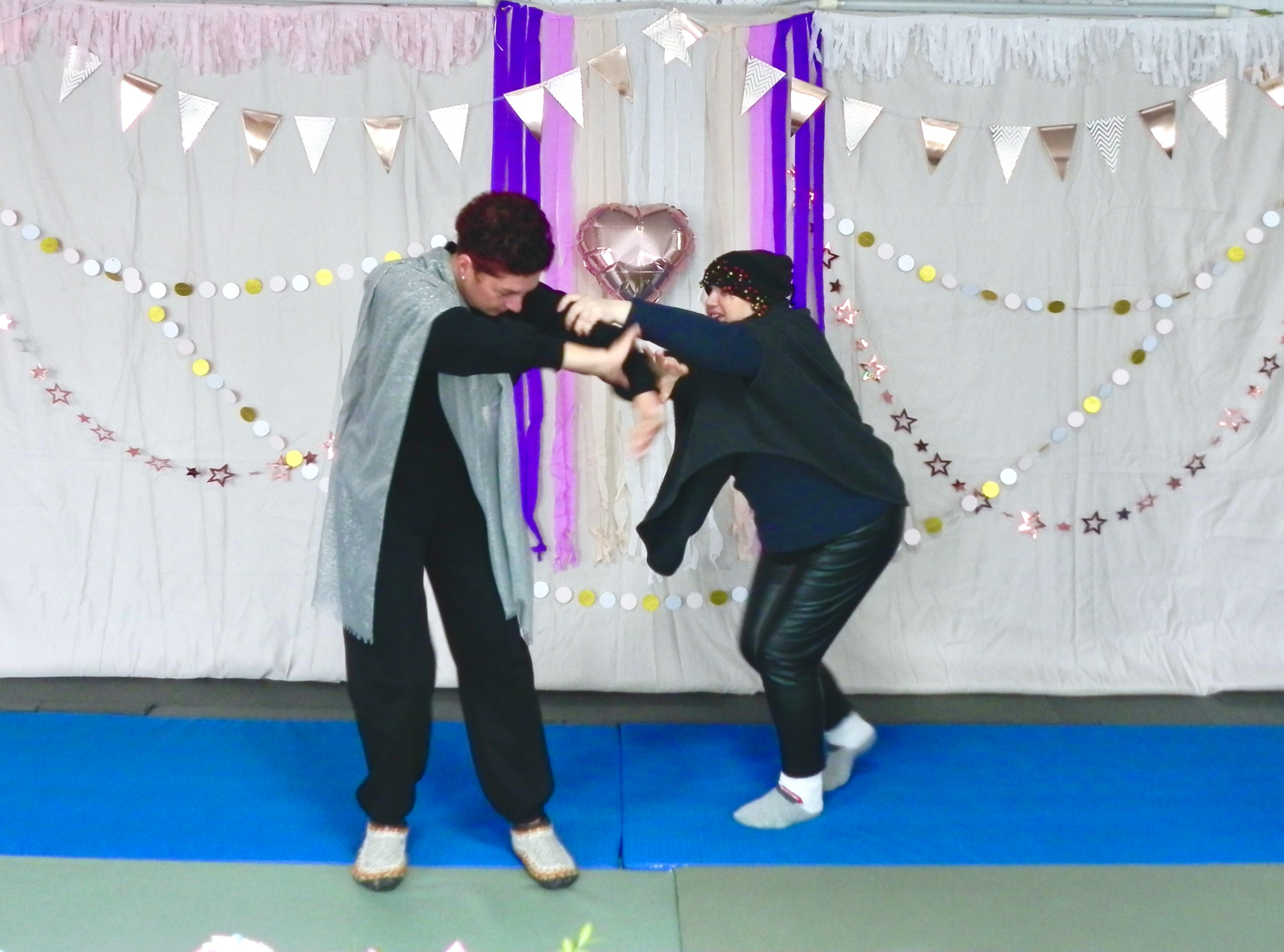 Затем Жива и Сова исполнили танец-импровизацию о борьбе ДУШИ человека с Сатаной под песню выпускницы детской группы нашей школы Воздуха вместе со своей группой, которую она создала. Это кавер песни «Демоны» украинской группы «Один в каноэ» (кавер ученицы можно послушать на юту-б: https://youtu.be/C7BN6gh4bxs?si=QWsY5oq-kHljxN6l).