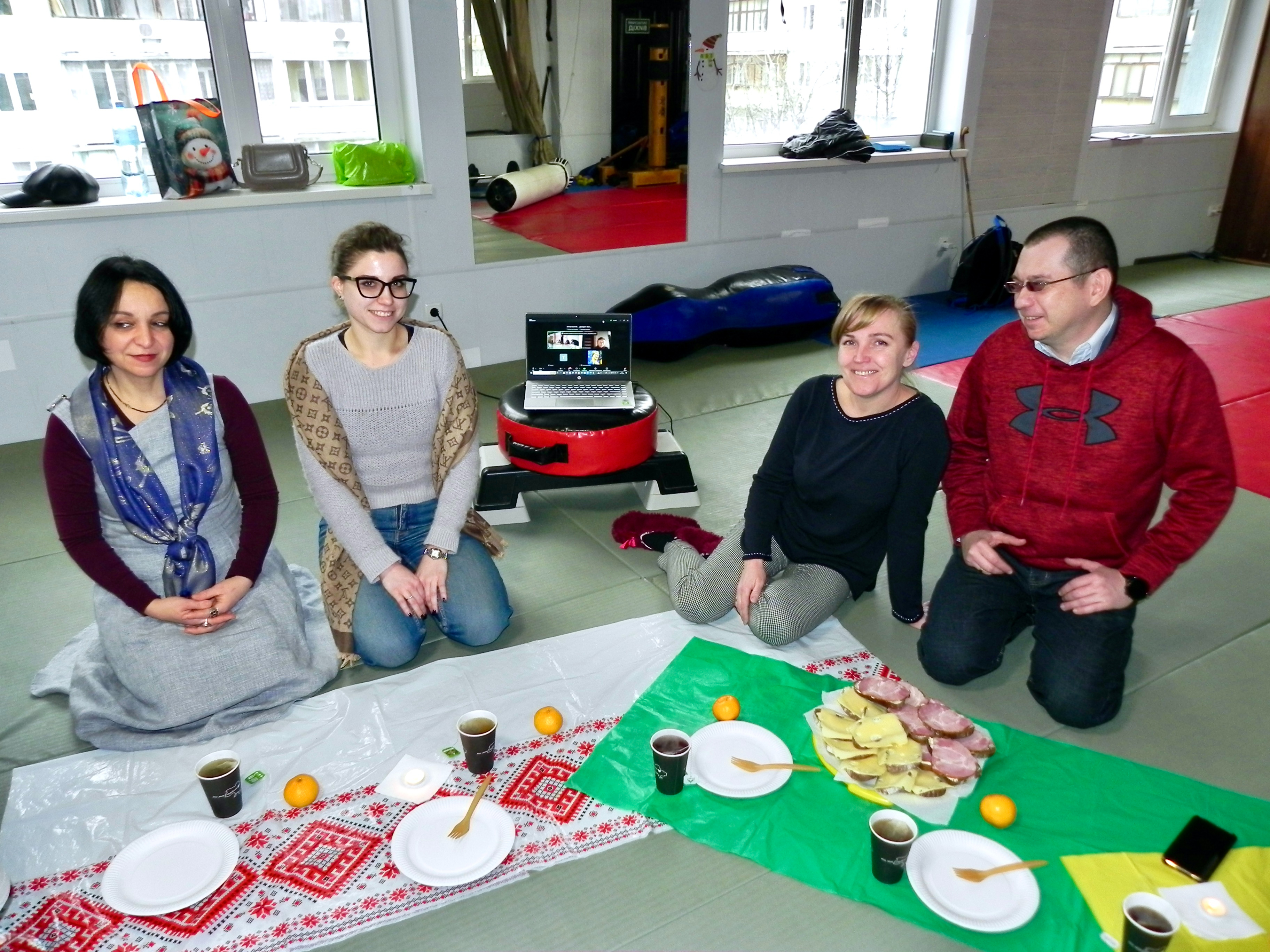 По традиции вторая часть праздника – духовное чаепитие, во время которого ученики задают вопросы Учителю. Ученикам онлайн-трансляции конечно было сложнее, так как вопросы-ответы перешли в коллективную беседу. Ученики сами стремились отвечать на вопросы друг друга и так увлекались этим, что забывали передавать микрофоны. У некоторых из онлайн-слушателей пропадала интернет-связь. Тем не менее, большинство из них старались быть на связи, присоединив половину Европы к нашему празднику!
